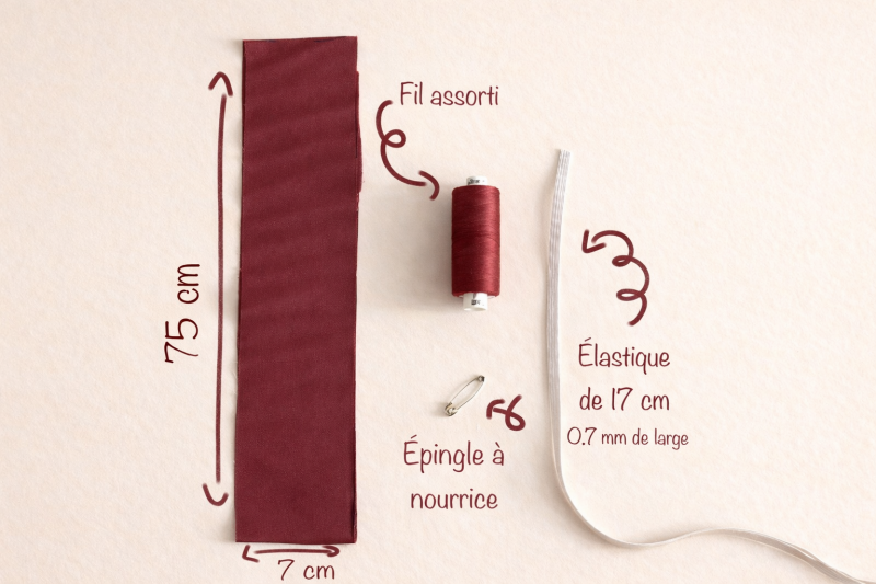 - Epingle à nourrice (pour faire passer l’élastique facilement).